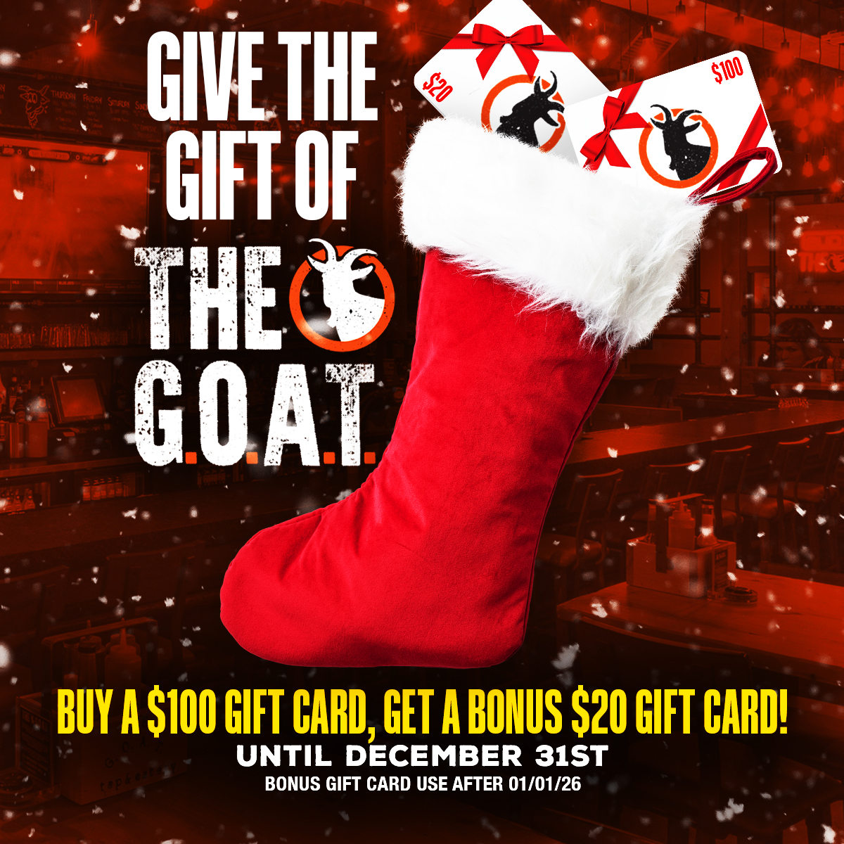 The GOAT has everything you need to make game day perfect. Enjoy $4.99 drinks, beers, and wine available all day, every day. Pair that with our famous wings, burgers, and shareables, and you’ve got the ultimate game-day experience. Whether you’re rolling deep with your fantasy football crew, grabbing dinner with family, or just catching the game with friends, The GOAT is your go-to spot.Why Watch at The GOAT?